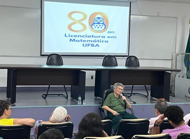 Atualmente, com 91 anos e uma memória de dar inveja aos jovens estudantes presentes na conversa, a professora falou sobre a sua formação como matemática e sobre os desafios enfrentados para a criação e consolidação do Curso de Matemática da UFBA como referência no Brasil.