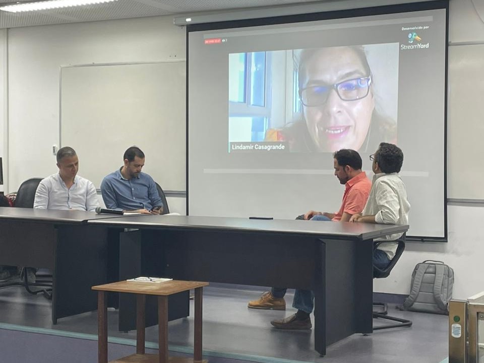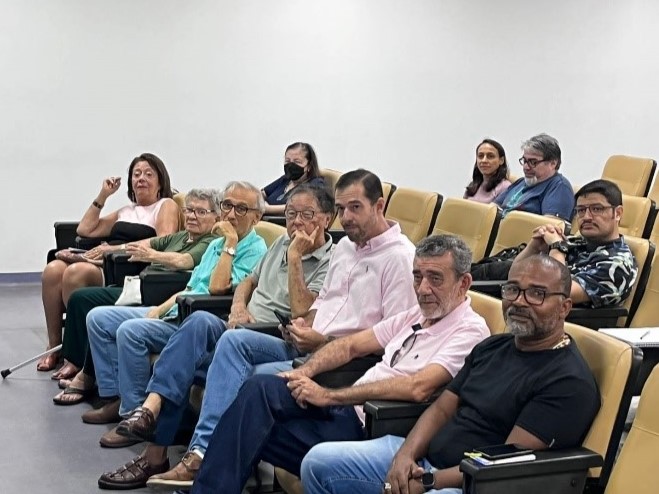 O evento de lançamento destas ações aconteceu no dia 14 de dezembro de 2023, com uma especial conversa sobre os primórdios do curso com a ex-aluna e ex-diretora do IME, a Prof.a Arlete Cerqueira Lima (Fig. 15). Graduada em Matemática pela antiga Faculdade de Filosofia, Ciências e Letras da UFBA, a Prof.a Arlete é considerada a primeira Mestra em Matemática da Bahia e, entre outras importantes contribuições durante os seus anos de estudo e trabalho na UFBA, participou diretamente do processo de fundação do Instituto de Matemática da UFBA, que mais tarde se transformou no Instituto de Matemática e Estatística da UFBA.