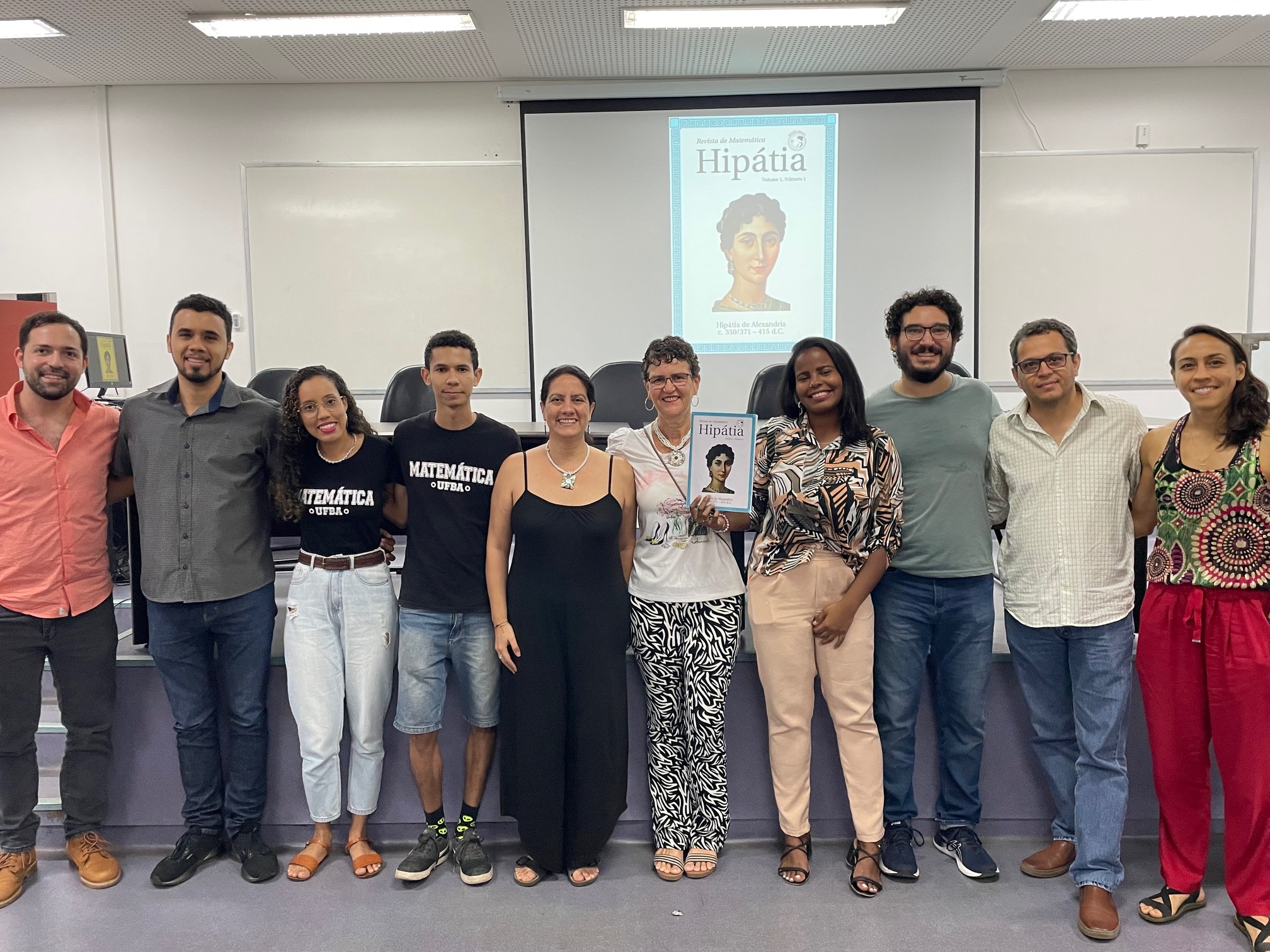 Às 16h40 do dia 24 de agosto de 2023, ocorreu a Cerimônia de lançamento da Revista de Matemática Hipátia, no Auditório do IME-UFBA. A Cerimônia teve duração aproximada de 1 hora e contou com a presença de professores e estudantes do IME-UFBA no local, bem como participantes externos interessados neste projeto, inclusive no formato virtual. À frente na mesa estiveram presentes os professores do DMAT: Samuel Feitosa e Vinícius Mello, membros representantes do Conselho Editorial da Revista; Darllan Pinto, Chefe do DMAT-UFBA; e Kleyber Mota, Diretor do IME-UFBA.