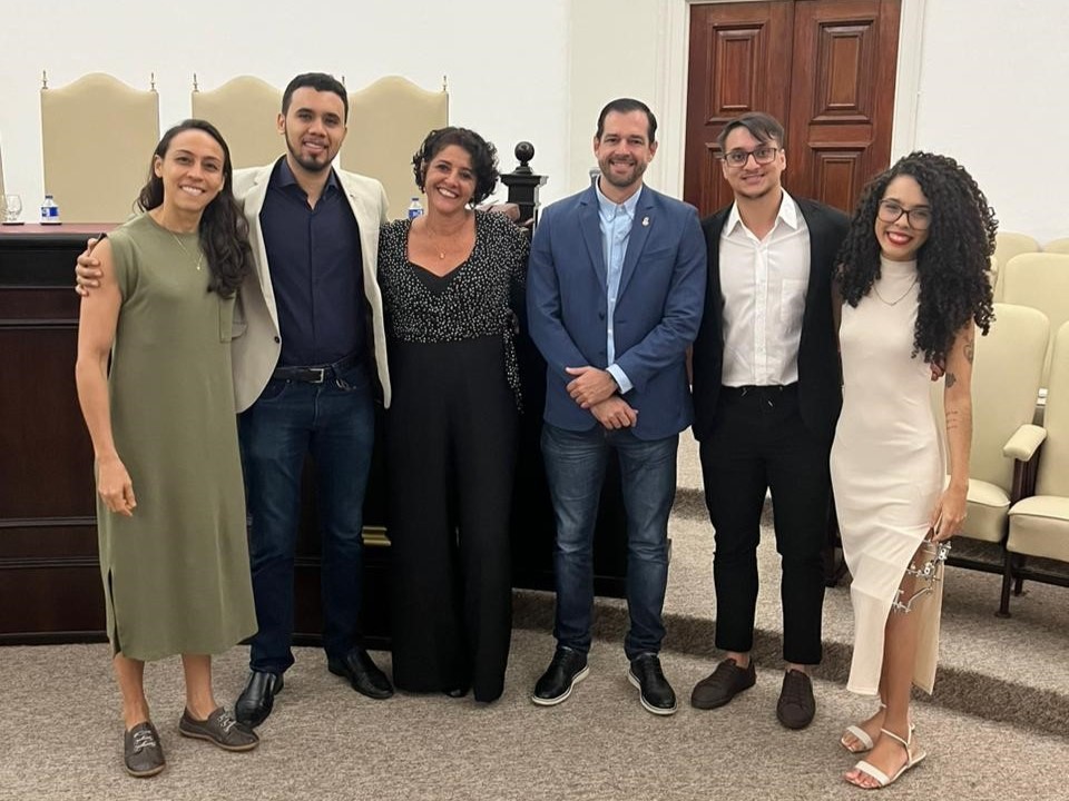 O nosso programa de Pós-graduação em Matemática foi agraciado com duas menções honrosas: Juan Carlos Arroyave Blanco (Dissertação 2021), orientado pelo prof. Tertuliano Franco; e Elivan Neri Lima (Dissertação 2022), orientado pela prof.a Cristina Lizana Araneda. Foi realizada uma cerimônia de premiação dos trabalhos (Fig. 18), celebrando o encerramento deste primeiro Prêmio UFBA de Tese, Dissertação Acadêmica e Trabalho de Conclusão de Programa Profissional, no Salão Nobre da Reitoria no dia 12 de dezembro de 2023.